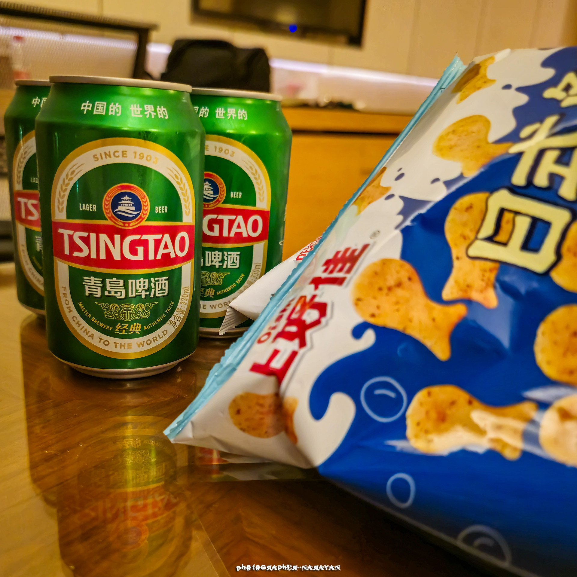 마지막날 밤에 편의점에서 사온 맥주와 과자입니다.