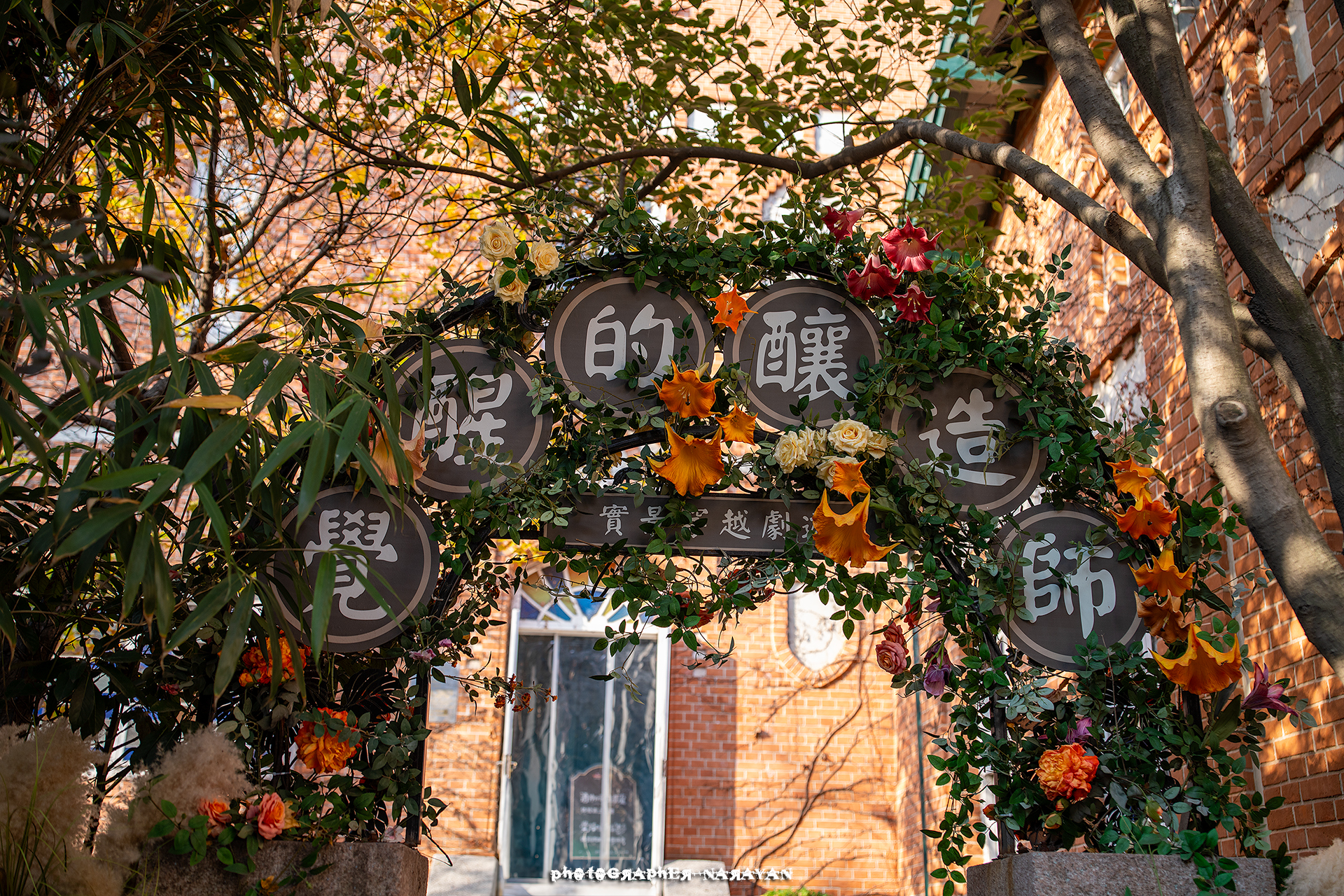 입구부터 화려하게 꽃과 장식이 곳곳에 배치되어 있습니다.