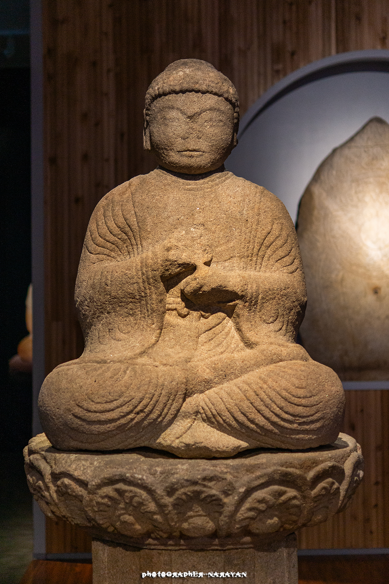 이 돌석상은 '비로자나불' 로, 진리 자체를 상징하는 부처님입니다.