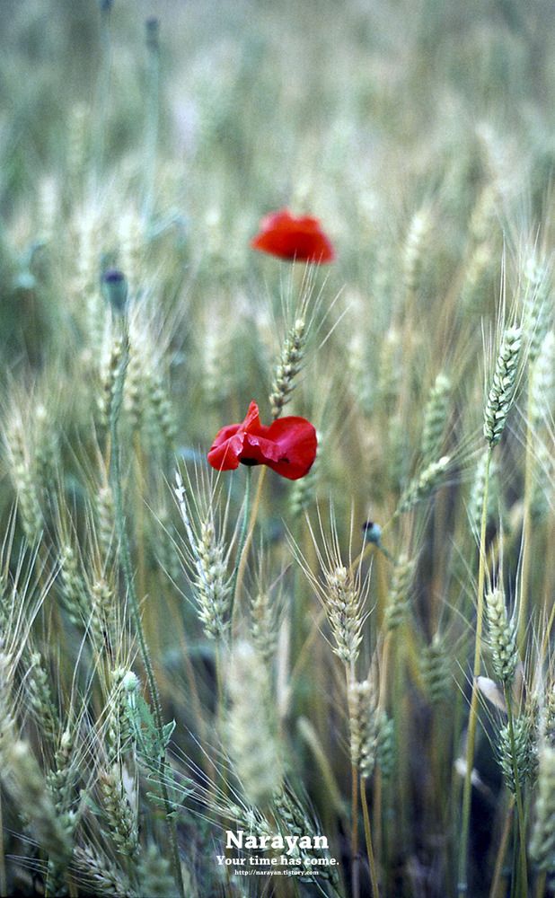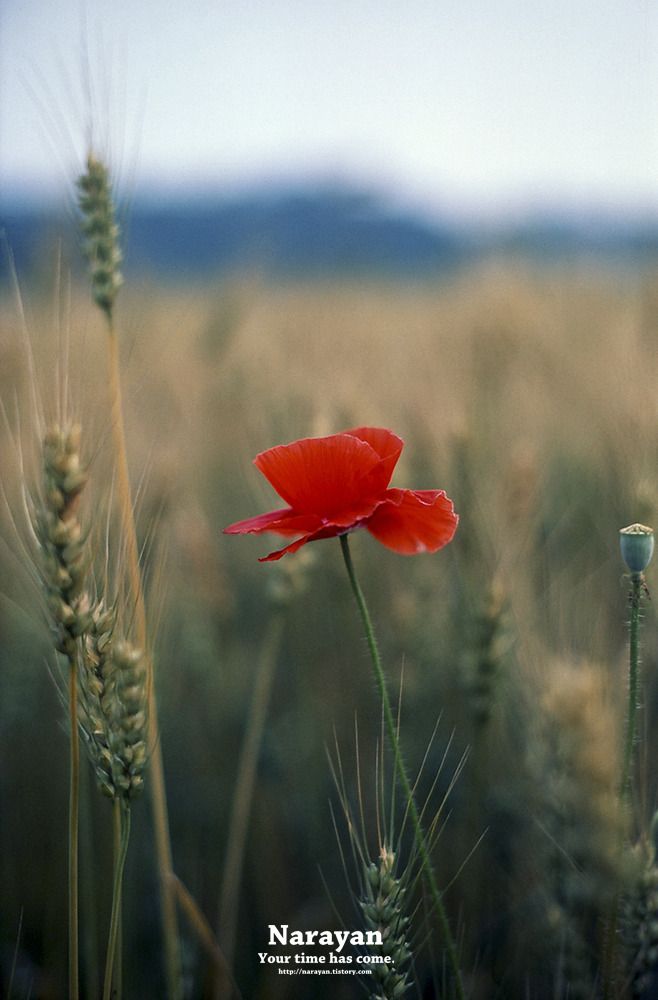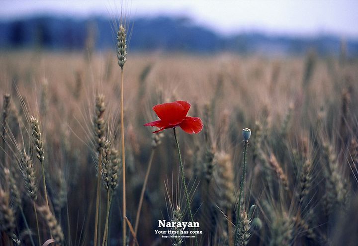 보리밭 중간중간 빨간 꽃이 피어 있었어요~ +_+ㅋ