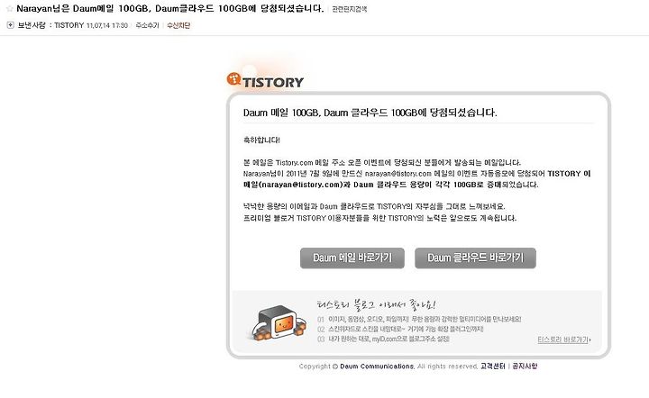 이로써 이제 주력은 티스토리 메일이 되겠군요 ㅎㅎ